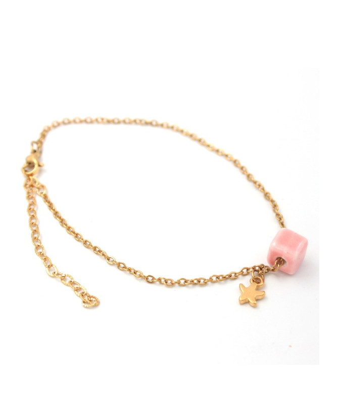 κύβος κεραμικός (8mm) χρώμα: ροζ, μοτίφ: ZAMAC επιχρυσωμένο με χρυσό 24Κ