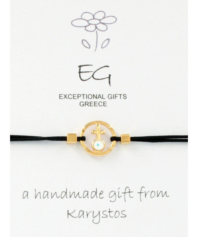 Βραχιόλι ματάκι-σταυρουδάκιΜε λευκό σμάλτο και μαύρο σχοινί.