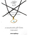Μενταγιόν μάτι, με λευκό σμάλτο & μαύρο κορδόνι