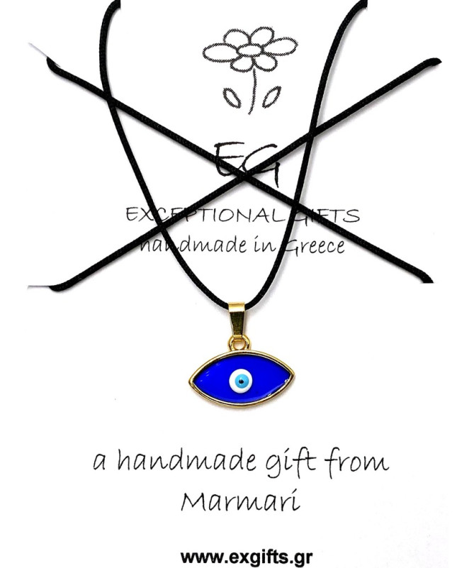 Eye pendant, with blue enamel & black cord